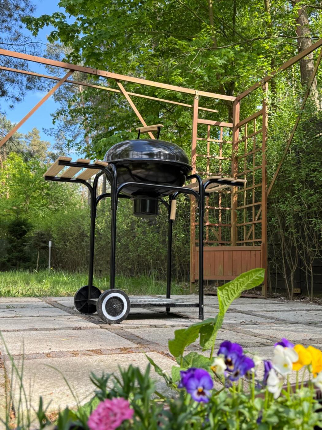 Dom z 1 sypialnią. In the kitchen, guests will find a stovetop, a refrigerator and a microwave. The holiday home features a washing machine, an electric kettle, a sofa, a flat-screen TV, as well as garden views. The unit has 1 bed. Dom wakacyjny - 4 osobowy. Powierzchnia pokoju ok.: 40 mkw.